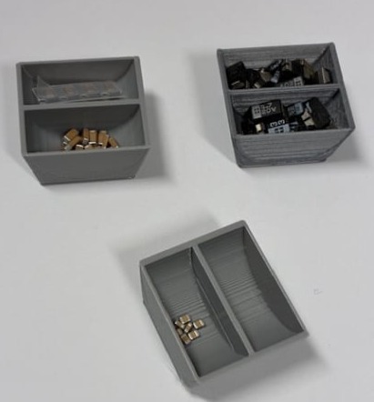 It’s a vertical storage elevator that holds small components in containers and baskets. The elevator lowers into a hole in the workbench, and through an app I can select any component. The system then brings the corresponding basket to the top for easy access.